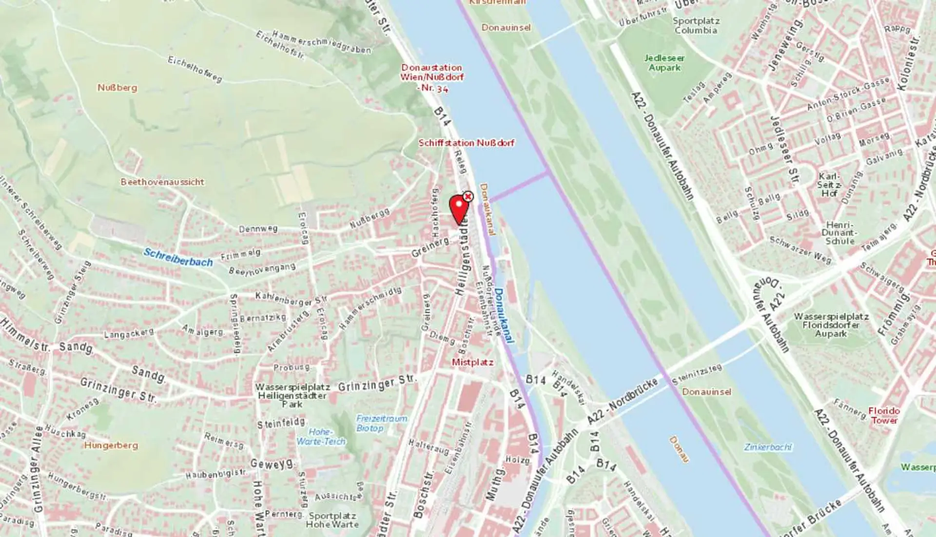Das Objekt befindet sich in unmittelbarer Nähe zum Nußdorfer Platz, einem etablierten Geschäfts- und Verkehrsknotenpunkt. Die Lage zeichnet sich durch eine sehr gute öffentliche Verkehrsanbindung aus, unter anderem durch Straßenbahn- und Buslinien sowie die Nähe zur U-Bahn-Station Spittelau.